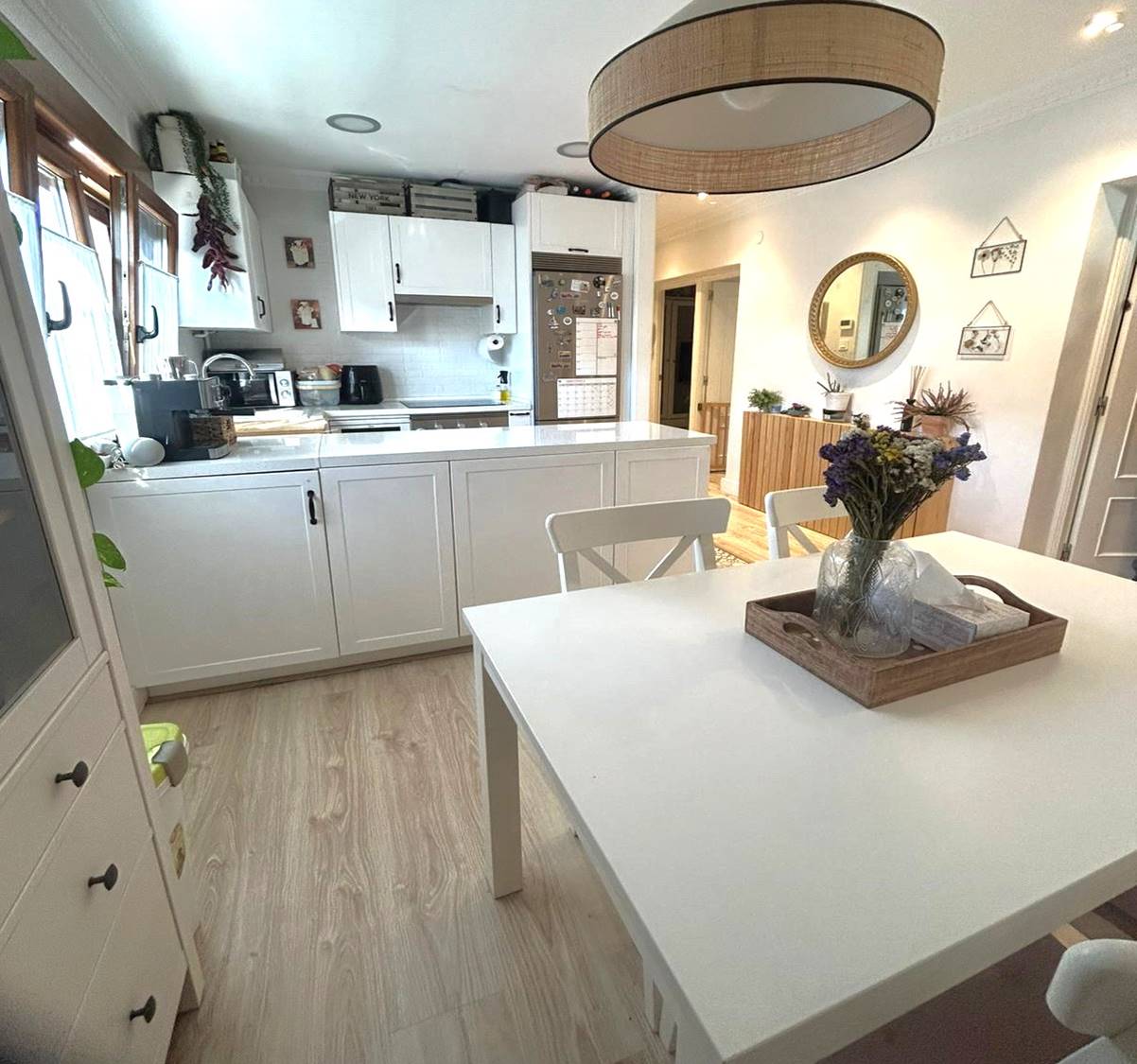 La vivienda se distribuye en un salón, una moderna y luminosa cocina con un bonito comedor, dos habitaciones y un baño con ducha y ventana.