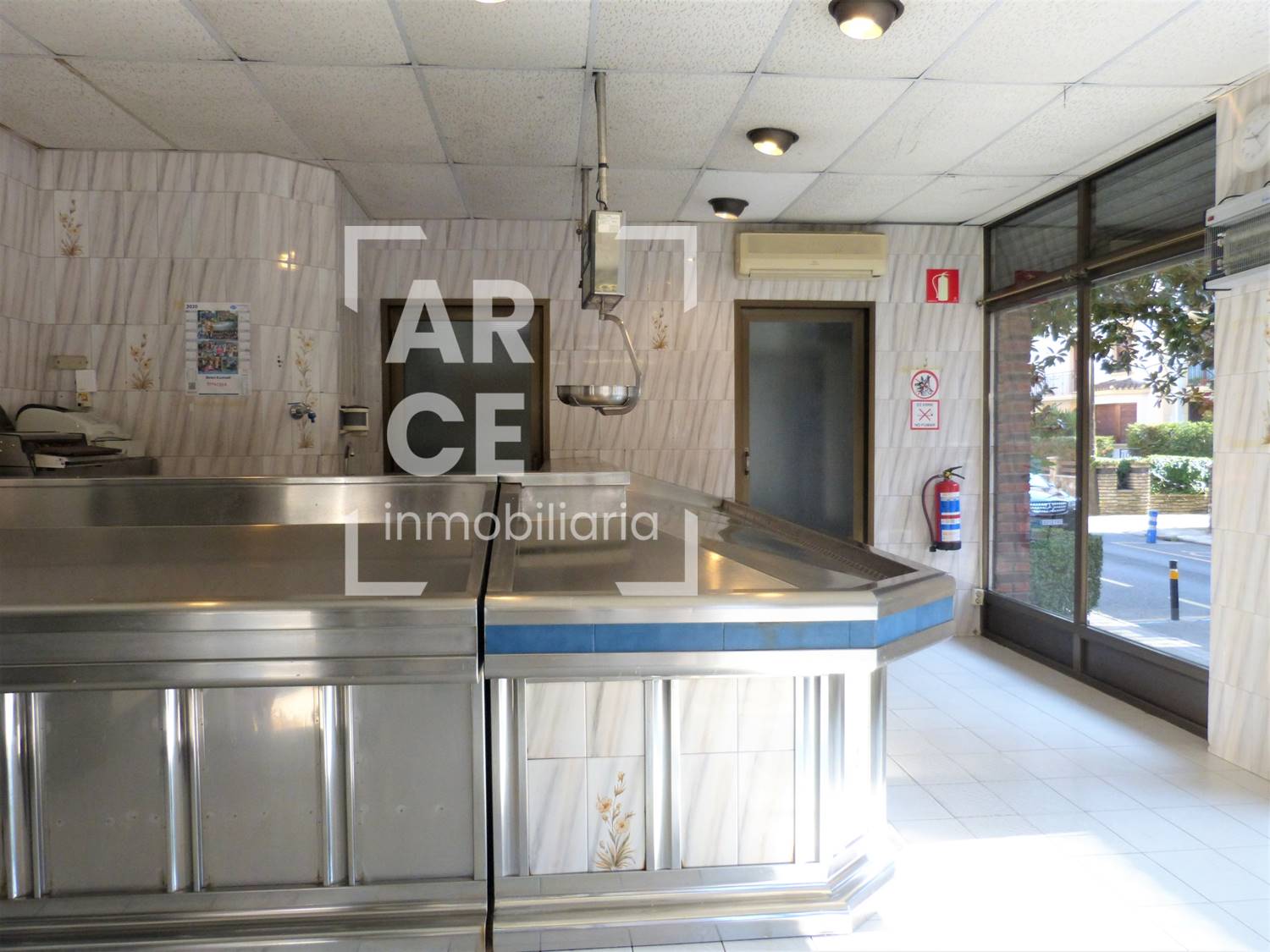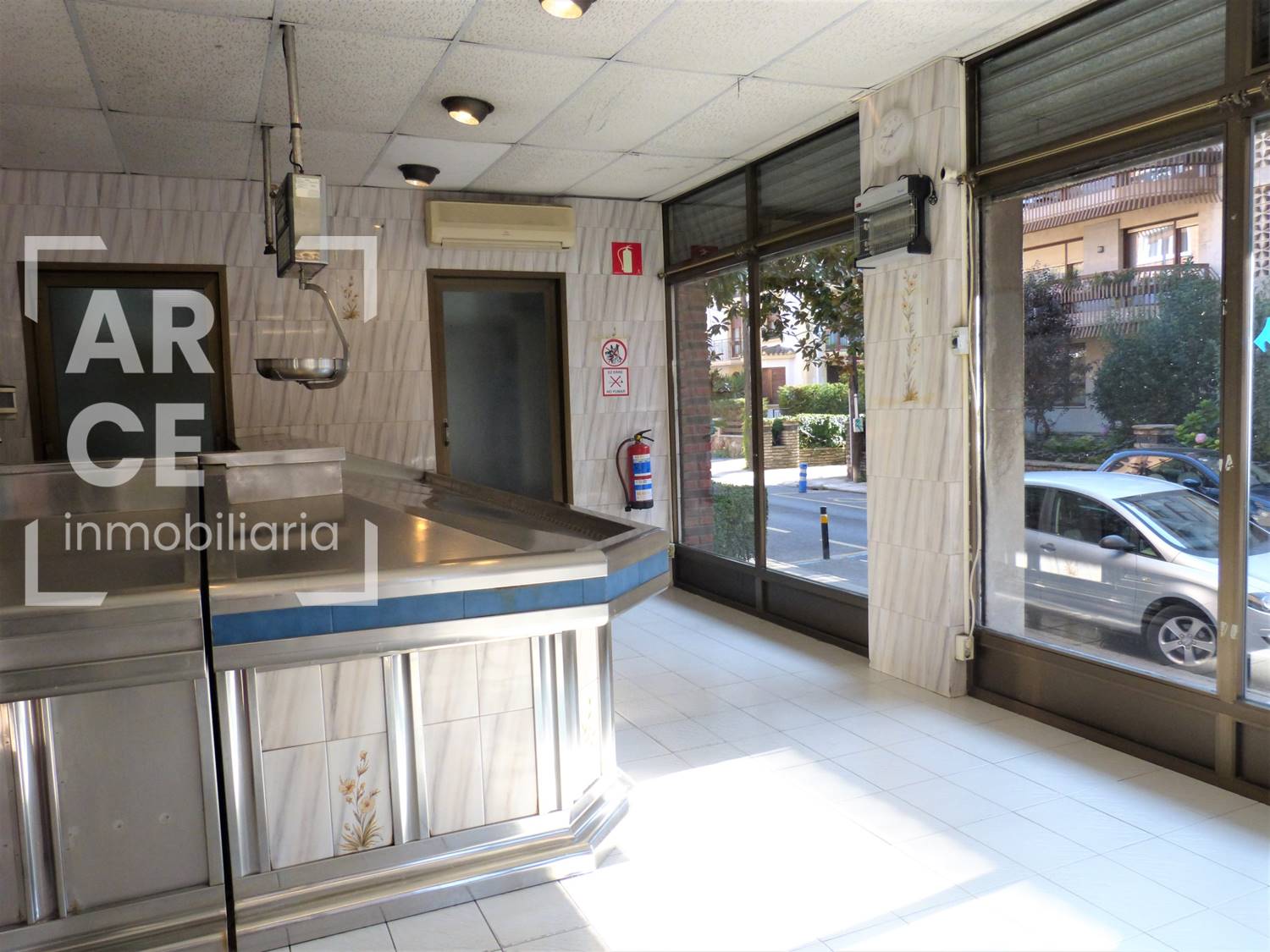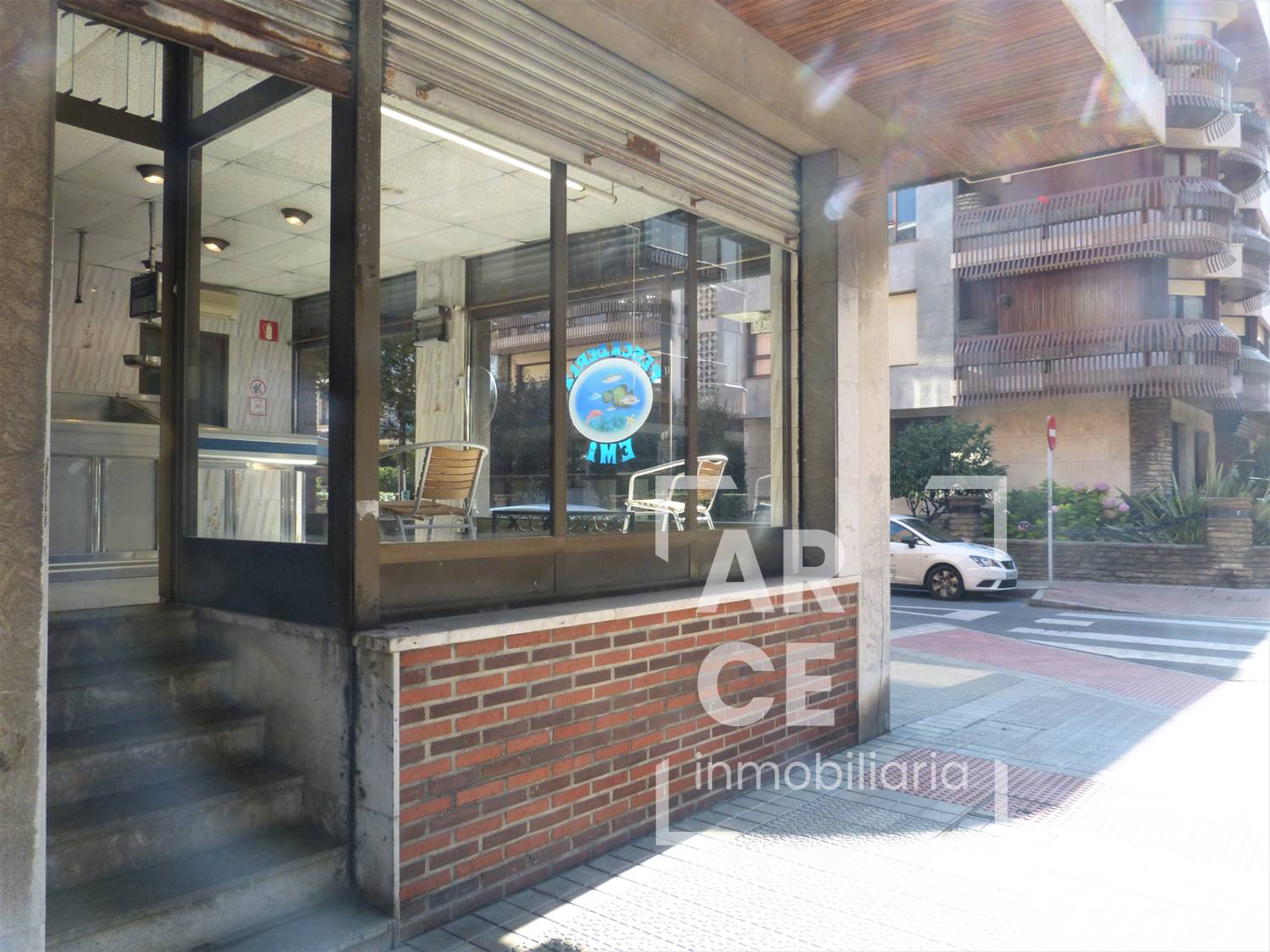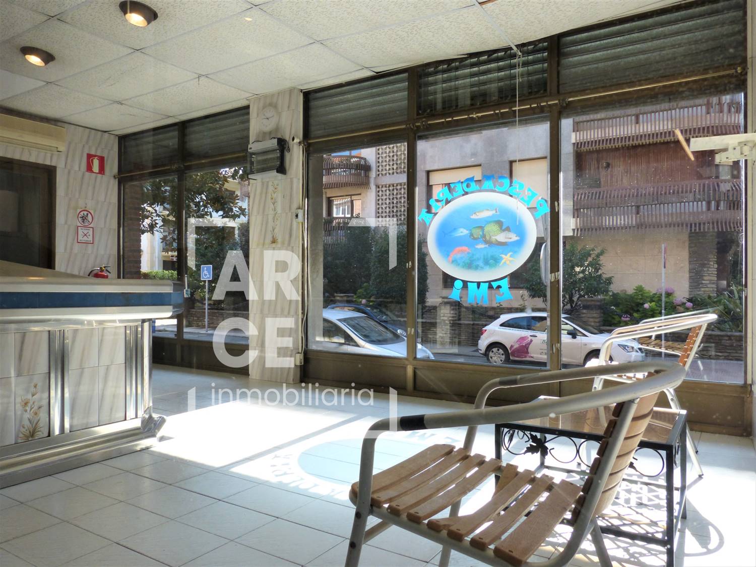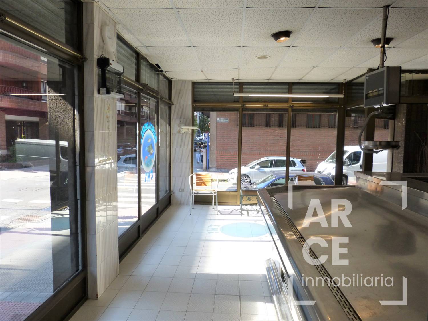 Tiene una longitud de fachada de 13 m haciendo esquina, con 3 grandes ventanales de suelo a techo que le dotan de gran cantidad de luz natural y está situado cerca de la calle Mayor y del Puente Colgante. La distribución actual del local, dado su anterior uso como pescadería, se distribuye en una zona amplia de atención al público y otra interior de almacén con un baño. La carpintería exterior es de aluminio y el suelo de baldosa. El local también está disponible en régimen de alquiler.